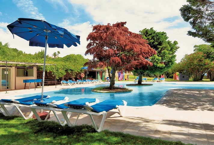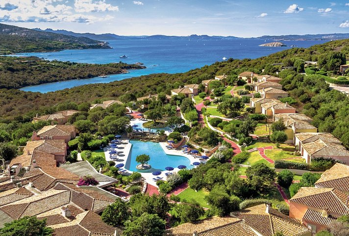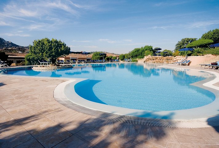 Die sardische Architektur umgeben von einem mediterranen Garten erzeugt in dem kleinen Hotel inseltypisches Urlaubsfeeling. Ob unter Bäumen am Pool oder am Meer: Wer Entspannung am Wasser liebt, ist hier goldrichtig.