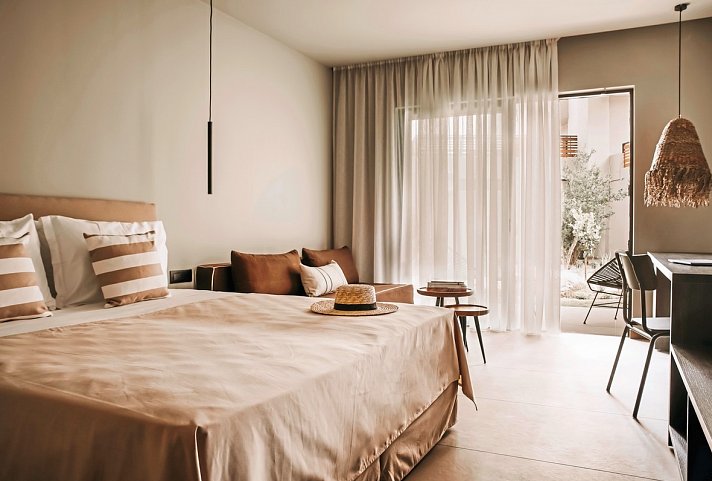 Mit eleganten Zimmern und Suiten in erdigen Farben, modernem Design und hohem Komfort schafft das neue Mitglied des Cook's Club auf Rhodos Wohlfühlatmosphäre. Einige haben sogar einen eigenen Jacuzzi – wunderbar!