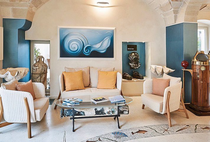 Mit seiner Sammlung nautischer Artefakte und maritimer Dekoration verbeugt sich das Hotel vor dem Meer – und dessen Herrscher Neptun. Ideal für einen komfortablen Aufenthalt in eleganter, einzigartiger Atmosphäre!