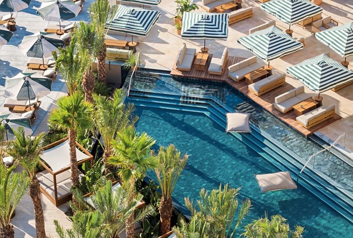 1 Pool: Infinity-Pool, Sonnenschirme, Liegen, Badetuch