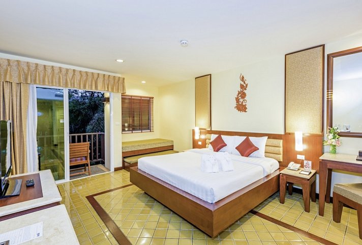 Eine Oase am Rande von Patong: Entspannen Sie unter Kokospalmen und blühenden Pflanzen. Besonders schön: die luxuriösen Deluxe-Bungalows im chinesisch-portugiesischen Kolonialstil.