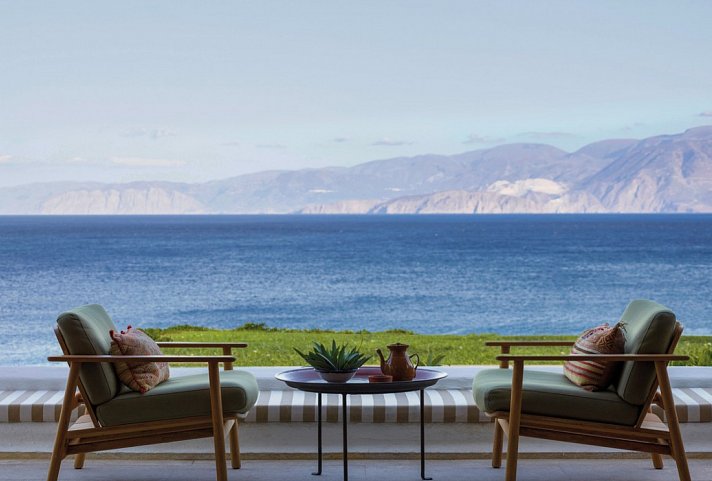 Klein aber fein präsentiert sich das "Relais & Chateaux" Mitglied über dem türkisblauen Meer mit privatem Sandstrand. Sympathische Dorfatmosphäre gepaart mit kretischer Herzlichkeit und hohem Komfort.
