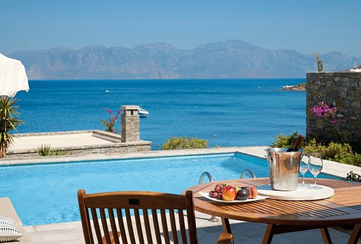 Die erstklassige kleine Hotelanlage vermittelt mit ihrer Architektur, den Einrichtungen und ihrer Lage einen Hauch von Exklusivität und Komfort mit kretischem Ambiente. Den schmalen, aber feinsandigen privaten Strand erreichen Sie vom Hauptgebäude und den Bungalows (Liegen, Schirme und Badetücher ohne Gebühr) durch die schöne Gartenanlage. Den Gästen stehen drei Restaurants (teilweise saisonbedingt), eine Bar, eine Beach-Bar für kulinarische Hochgenüsse zur Wahl. Entspannung und sportliches Aktivsein bieten der große Meerwasser-Swimmingpool mit Kinderbecken, der Fitnessbereich, das Six Senses Spa im benachbarten Schwesterhotel Porto Elounda Golf & Spa Resort und die vielfältigen Sportmöglichkeiten, die von Golf und Tennis bis zu Wassersport und Tauchen reichen. Nach Elounda ca. 2 km, nach Aghios Nikolaos ca. 7 km, zum Flughafen Heraklion ca. 66 km.