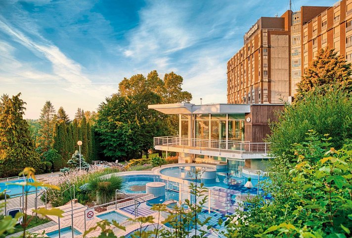 Das all inclusive Kurhotel, nur wenige Schritte vom Kurpark und ca. 500 m vom Thermalsee entfernt, bietet neben klassischen Kuren und Thermalanwendungen auch wohltuende Wellnessanwendungen an. Relaxen in einer entspannten Atmosphäre.