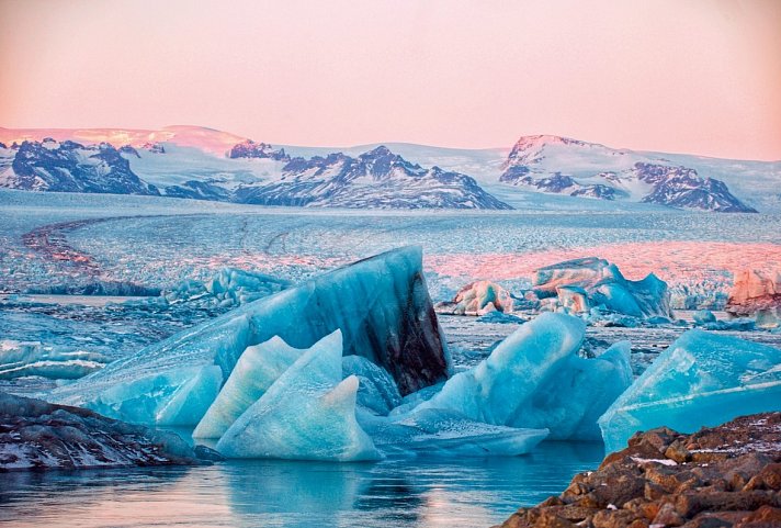 (Freitag) Der heutige Tag steht ganz im Zeichen der Gletscherriesen Islands. Vorbei an unzähligen Gletscherzungen geht es zunächst an die Lagune Jökulsarlon, wo der riesige Gletscher in den winterlich erstarrten See kalbt - ein Naturkino der Superlative zwischen Gletschern und schwarzem Strand. Tropfende, blassblaue Eisblöcke brechen von der Gletscherzunge des Vatnajökull Gletschers ab und treiben im bis zu 180 m tiefen Wasser direkt auf die schwarzen Vulkanstrände. Der bekannteste von ihnen ist der sogenannte Diamond Beach, der ein sehr beliebtes Fotomotiv ist. Die kleinen bis größeren Eisblöcke werden an den schwarzen Strand gespült und funkeln in der Sonne wie unzählige Diamanten. Ein einmaliges Bild! Im Anschluss fahren Sie weiter zum Skaftafell Nationalpark. Bei einer kurzen Wanderung zum Wasserfall Svartifoss öffnen sich fantastische Ausblicke auf die grandiose Gletscherwelt ringsum. Der beeindruckende Wasserfall verdankt seinen Namen den ihn umringenden, schwarzen Basaltsäulen. Von einer etwas weiteren Distanz betrachtet, erinnert die Form des Wasserfalls an ein Herz, was ihm unter den Isländern den Ruf des romantischen Wasserfalls eingebracht hat. Eine Nacht im Raum Vik. Ca. 300 km/ca. 4,5 Std. (Frühstück)