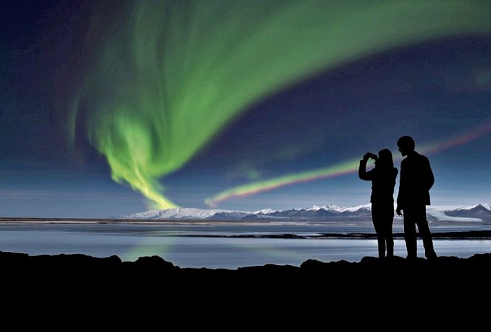 (Montag) In Westisland erreichen Sie den Ort Borgarnes, der als die Heimat der isländischen Sagas gilt. Vorbei an Reykholt geht es zu den malerischen Wasserfällen Hraunfossar, die auf über einem Kilometer Länge direkt aus einem Lavafeld in den Fluss Hvita stürzen, sowie zur Deildartunguhver, der größten Heißwasserquelle Europas. Anschließend führt die Route nach Norden, bis Sie den Hrutafjördur erreichen. Abends halten Sie in den nächsten Tagen jeweils Ausschau nach Polarlichtern. Ihr Reiseleiter kennt die besten Plätze und erklärt Ihnen das spektakuläre Phänomen. Eine Nacht im Raum Laugarbakki. Ca. 300 km/ca. 4,5 Std. (Frühstück, Abendessen)