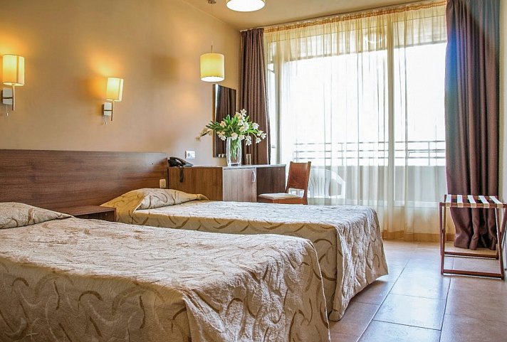 Das Hotel erwartet Sie in zentraler Lage, nur 100 Meter vom Sonnenstrand entfernt. Es bietet eine ideale Ausgangslage für Ausflüge, lädt aber auch zum Verweilen am Pool und der Bar ein.