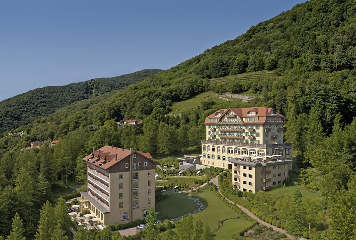 Das neu geschaffene Spa (für Hotelgäste inbegriffen) fügt sich perfekt zwischen die beiden historischen Gebäude des Luxushotels ein. Der Wellnessbereich umfasst drei Einzel- und einen Doppelbehandlungsraum, 2 Saunen, Türkisches Bad sowie Innen- und Außenpools. Außerdem gibt es einen Außenpfad, der sich durch den privaten Wald des Hotels schlängelt. Gegen Gebühr: Massagen und Behandlungen wie Alpenkräuter-Fango, 300 m Power-Run zur Ankurbelung des Stoffwechsels.