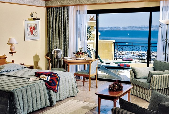 Doppel, Meerblick, 1 Bad, Badewanne, Haartrockner, Klimaanlage, zentral gesteuert, Minibar kostenpflichtig, Auffüllung regelmäßig, Safe, Bügelbrett, Bügeleisen, 1 TV (Sat-TV), WLAN, Wasserkocher, Kaffee/Tee, Balkon