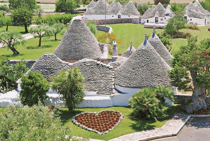 Eingebettet in einem 10 ha großen Park liegt die moderne Hotelanlage. Sie bietet Ihnen mehrere hübsche kleine Trulli-Häuschen im mediterranen Stil.