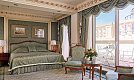 Grand Room (34) ca. 45 qm: King-Size Bett oder zwei separate Betten, stilvolles Sitzmobiliar, Damast-Tapete und Stuck, Blick auf Wiener Ringstraße und/oder Terrasse, Marmorbadezimmer mit Doppelwaschbecken.