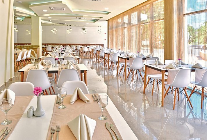 All Inclusive: Frühstück (Buffet), kontinentales Frühstück, Mittagessen (Buffet), Abendessen (Buffet), Getränke kostenfrei (Softdrinks, Kaffee/Tee, Bier, Säfte, lokale Spirituosen, Wasser, 10-23 Uhr), Snacks (15-17 Uhr), Kaffee/Tee und Gebäck (15-17 Uhr), Eis (12:30-18 Uhr)