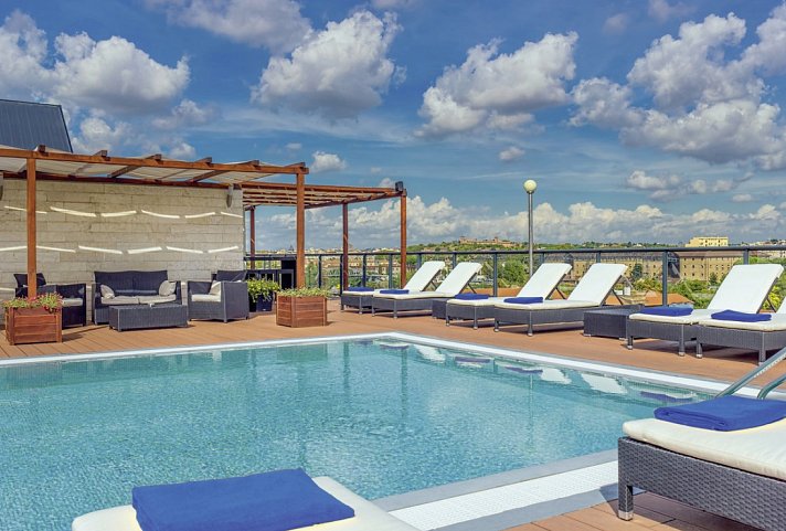 Das moderne H10 roma città befindet sich mitten im Einkaufsviertel Marconi, mit Blick auf den Tiber. Nach einer Stadterkundung können Sie sich im Pool entspannen oder die wunderschöne Aussicht auf der Dachterasse genießen.