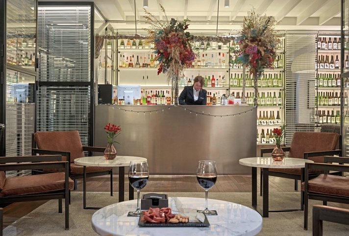 Recyclingbehälter im gesamten Hotel, Verwendung regionaler Baustoffe, Energieeffiziente Beleuchtung