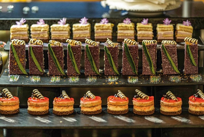 All Inclusive Plus: Frühstück (Buffet), Langschläferfrühstück bis 12 Uhr, Mittagessen (Buffet), Abendessen (Buffet), Getränke ganztägig kostenfrei (Softdrinks, Mineralwasser, Kaffee/Tee, Tischwein, Bier, Säfte, lokale Getränke, Cocktails, Longdrinks, lokale Spirituosen, Spirituosen, Wasser), Snacks (15-17 Uhr), Kaffee/Tee und Gebäck (14-17 Uhr), Eis (11-21 Uhr), Internationale Spirituosen kostenfrei (laut Getränkekarte) (ganztägig), Minibar (Auffüllung täglich, Softdrinks, Kaffee/Tee, Bier, Wasser, Snacks), Galadinner, Abendessen im à-la-carte-Restaurant (1x pro Aufenthalt in einem Restaurant, Mindestaufenthalt 7 Nächte)