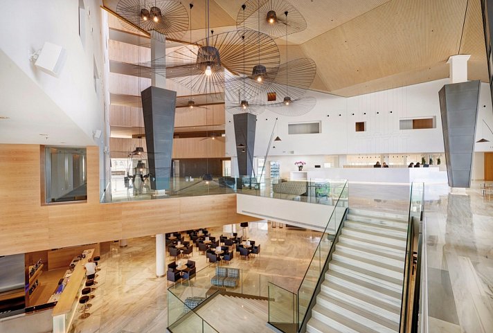 Über riesige Fensterflächen auf Pool und Meer blicken? In modernen Räumen umgeben von sanften Farbtönen entspannen? Dieses weitläufige, elegante Komforthotel erfüllt Urlaubsträume von Badefreunden, Sportlern und Ausgehlustigen gleichermaßen.