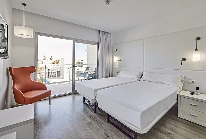 21-25 qm, Doppel, Standard, Etage, 1., 2., 3., 4., Poolblick, Doppelbetten (1 Doppel- oder 2 Einzelbetten), Regendusche, Haartrockner, Klimaanlage, Safe, 1 TV (Sat-TV, Smart-TV), WLAN, Wasserkocher, Kühlschrank, Balkon (möbliert), Kopfkissen-Menü
