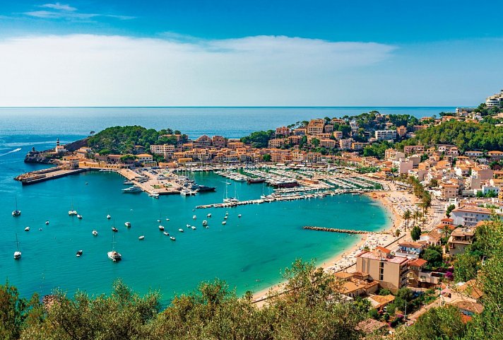 Nach dem Frühstück ist die Mandelparfümfabrik „Flor D`Ametler Ihr erster Halt inklusive Besichtigung und kleinem Geschenk (Parfüm oder Seife). Weiterreise Richtung Nordwesten, der landschaftliche sehr viel zu bieten hat. Gegen 12 Uhr erreichen Sie die Stadt Soller, die für ihre malerische Schönheit, kulturellen Sehenswürdigkeiten und die umliegenden Zitrusplantagen bekannt ist. Zu den Highlights zählen die historische Straßenbahn, das Museum für zeitgenössische Kunst sowie die reizvollen Plätze und Straßen, die mit Cafés und Geschäften gesäumt sind. Nach der Altstadtbesichtigung geht es über Puerto de Soller (Fotostopp), Ca Na Susi (inklusive Mittagessen mit Tagesmenü und 1 Mandelkuchen als Dessert) und Deiá in das berühmte Dorf Valldemossa. Nach der Stadtbesichtigung (Kartäuserkloster nicht inkl.) erfolgt die Rückfahrt an die Playa de Palma.