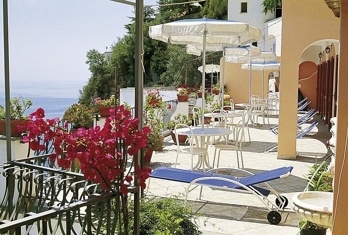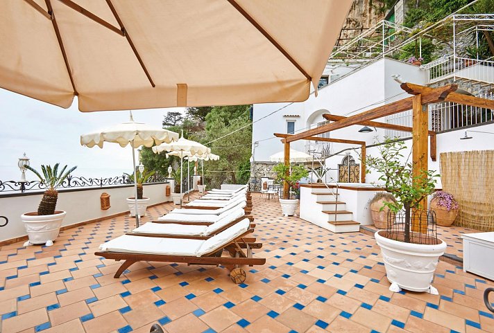 Für Romantiker! Die ehemalige Villa schmiegt sich an den Berghang. Der Blick auf die Amalfiküste und das blaue Meer ist atemberaubend. Genießen Sie die Sonnenuntergänge von der Restaurantterrasse.