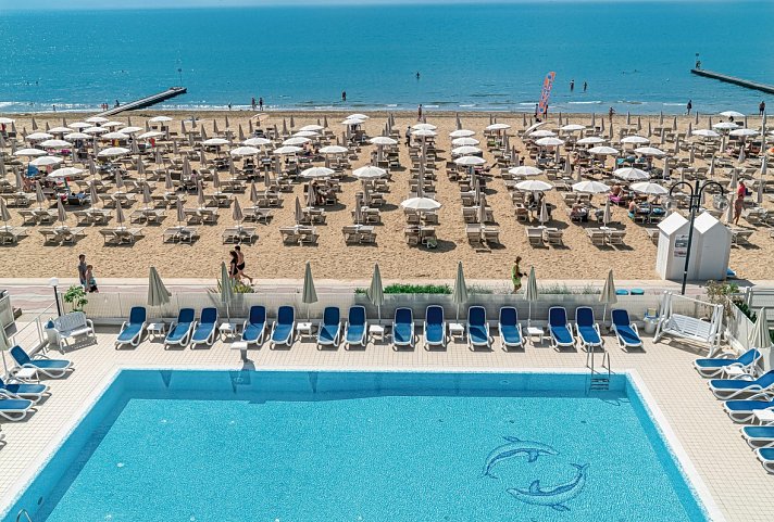 Ankommen und wohlfühlen! Dafür sorgen der persönliche Service und das herzliche Personal. Der Poolbereich grenzt an den goldenen Strand mit Blick auf die blaue Adria. Für unbeschwertes Urlaubsvergnügen