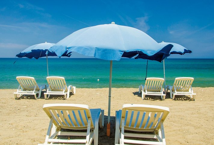 Hoteleigener Strand ca. 200m entfernt mit Strandleistungen inklusive (Liegen und Sonnenschirm)