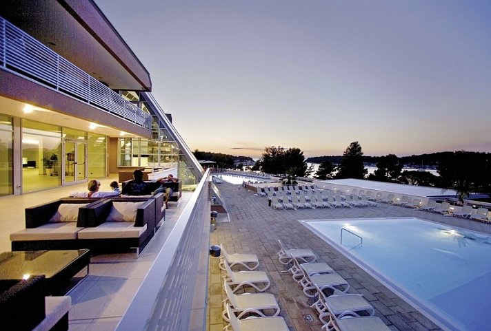 Wasserspaß unter der Sonne Istriens: Chillen an den Pools oder am nahen Strand. An der Wasserskistation mit Lift sausen Sie auf zwei Brettern übers Meer. Entspannung bietet ein Tag im Spa.