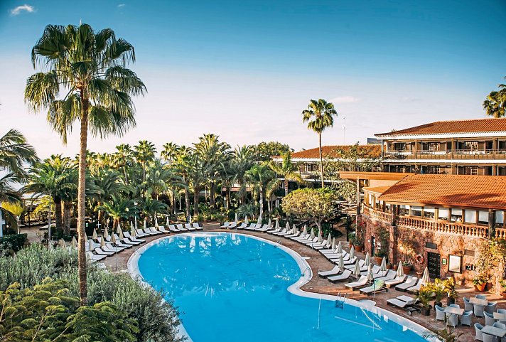 Pflanzen und Wasserläufen. Diese im kanarischen Stil erbaute Hotelanlage liegt ideal direkt an der