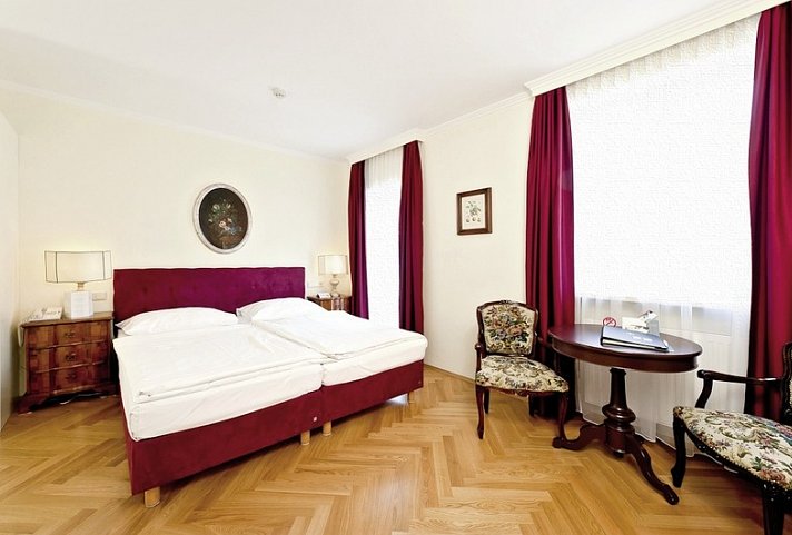 1877 als Stadtpalais erbaut, vereint das Traditionshotel typischen Wiener Charme und familiäre Gastlichkeit. Mit regionalen Schmankerln und anderen kulinarischen Genüssen verwöhnt das Restaurant „Roth“ im Stil eines echten Wiener Kaffeehauses.