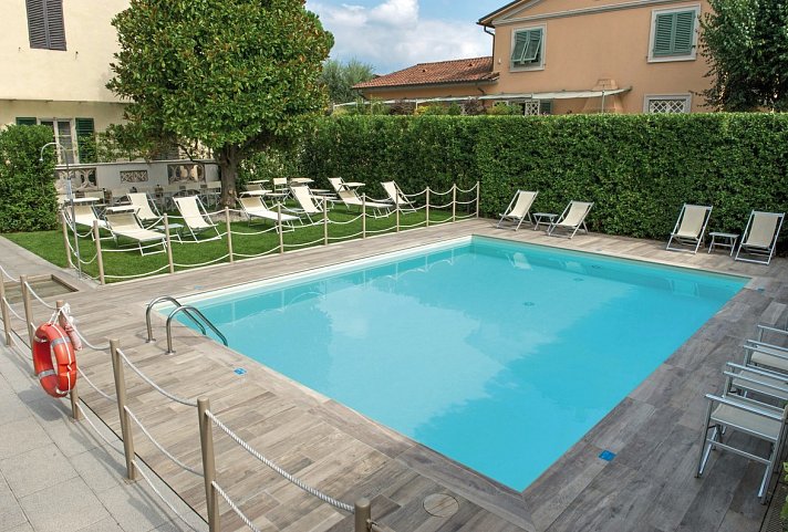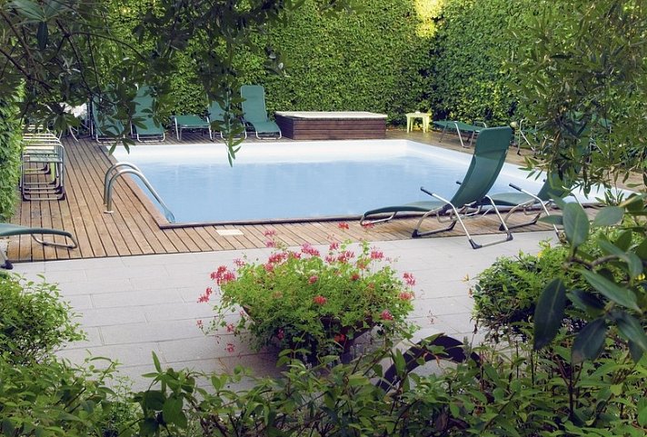 1 Pool: ca. 1.5.-30.9., Sonnenschirme, Liegen, Badetuch (kostenpflichtig)
