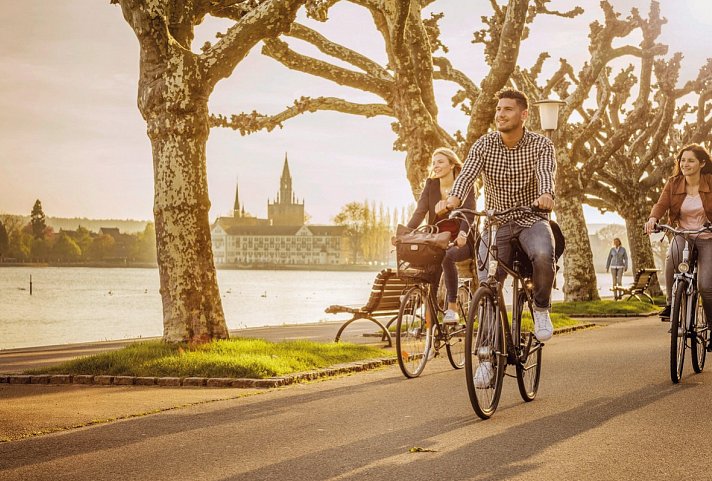 Erleben Sie atemberaubende Aussichten, blühende Streuobstwiesen, mediterrane Uferpromenaden und kulinarische Entdeckungen bei einer Radtour am Bodensee.