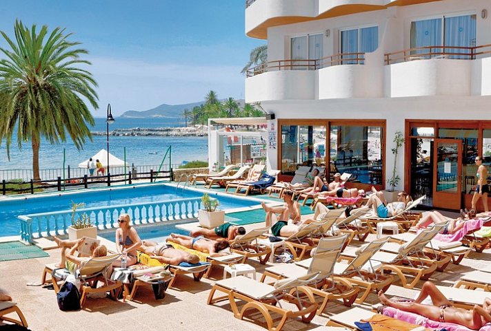 Nur eine palmenbewachsene Promenade trennt das komfortable Hotel vom Strand. Durch die Nähe zu Ibiza Stadt ist die Lage sowohl für Nachtschwärmer als auch für Kulturfans ideal.
