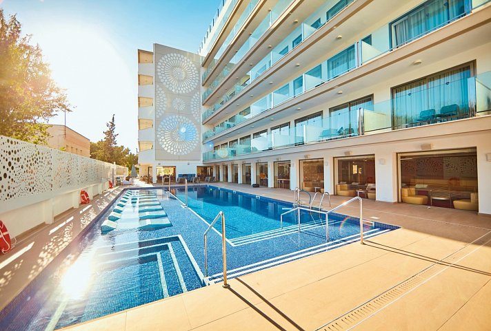 Mit ihrem modernen Design zieht die Anlage die Gäste in ihren Bann, die Zimmer sind komplett renoviert. Sie entspannen auf der Sonnenterrasse mit Liegen und Sonnenschirmen oder im schicken Pool.
