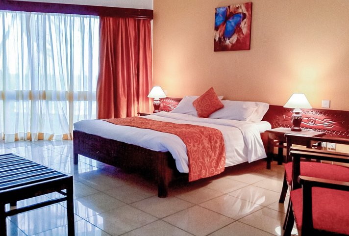 Mit seiner direkten Lage am weißen Sandstrand begeistert das hübsche Urlaubshotel Wassersportfans und Sonnenhungrige gleichermaßen. Auch für Kulturfreunde ist die Nähe zu der farbenfrohen Metropole Mombasa ideal.
