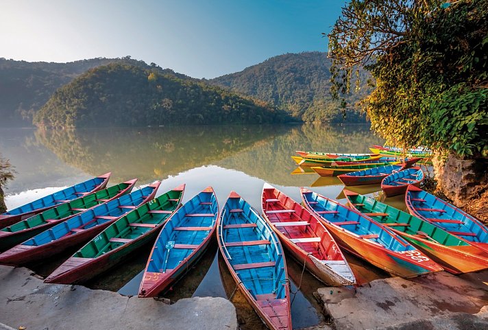 (Freitag) Nach einer kurzen Fahrt auf dem Siddharta-Highway erreichen Sie das auf 1.450 Metern gelegene Tansen, berühmt für seine spektakuläre Bergkulisse. An klaren Tagen sind die Berge Dhaulagiri, Annapurna, Manaslu, Gauri Shankar und andere Himalaya-Gipfel zu sehen. Sie fahren weiter nach Pokhara. Die drittgrößte Stadt Nepals liegt malerisch am Phewa See am Fuße des majestätischen „Fischschwanz-Berges“ Macchapuchare. Drei der zehn höchsten Berge der Welt befinden sich im Umkreis von 50 Kilometern um die Stadt, was sie zu Nepals Top-Trekkingziel macht. Die Stadt ist aber auch ein idealer Ort zum Entspannen und für Spaziergänge in den umliegenden Hügeln. 2 Nächte in Pokhara in der Fishtail Lodge (gehobene Mittelklasse, Landeskategorie: 4 Sterne). Ca. 210 km/ca. 7 Std. (Frühstück, Abendessen)
