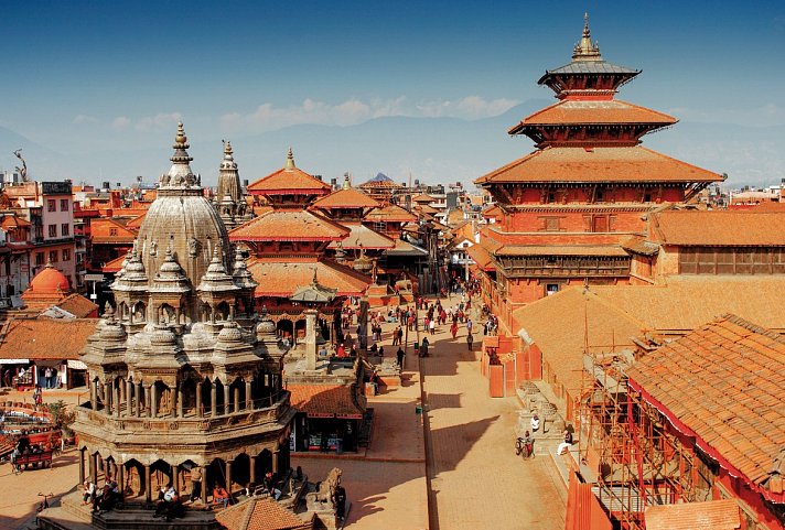 (Mittwoch) Vormittags erfahren Sie in den Dörfern Bungmati und Khokana mehr über das traditionelle Leben der Newari. Beide Dörfer verfügen über sehr beeindruckende Denkmäler und alte Tempel. Sie sehen traditionelle Häuser und erleben eine Kultur, die an das Mittelalter erinnert. Anschließend besuchen Sie die Königsstadt Patan, die älteste Stadt im Kathmandu-Tal. Den Mittelpunkt bilden die zahlreichen Bauten am Durbar Square mit reich geschmückten Fassaden und dem prächtigen Königspalast. Die Stadt ist bekannt für ihre reiche Tradition an Kunst und Kunsthandwerk und ihre kunstvolle Architektur. Obwohl das Erdbeben 2015 einige der jahrhundertealten Tempel zerstörte, war Patan von allen drei Städten des Tals die erste, die sich aus den Trümmern erhob und für die Touristen öffnete. Anschließend Transfer zum Flughafen. Ende der Rundreise ca. 18 Uhr. (Frühstück)