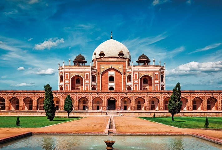 (Mittwoch) Programmbeginn um 9 Uhr. Sie erkunden heute zunächst die Freitagsmoschee Jama Masjid, die größte Moschee Indiens, die immer noch ein Gotteshaus für gläubige Muslime ist. Anschließend unternehmen Sie eine kurze Rikschafahrt durch die engen Gassen von Alt-Delhi. Auf dem Weg zum Raj Ghat, der Gedenkstätte Mahatma Gandhis, werfen Sie einen Blick auf das Rote Fort. Auf dem weiteren Tagesprogramm stehen das nach dem Vorbild des Arc de Triomphe in Paris entworfene monumentale India Gate, die aus der britischen Zeit stammenden Regierungsgebäude sowie das architektonisch richtungsweisende Mausoleum des zweiten Großmoguls Humayun. Das von Bega Begum neun Jahre nach dem Tod ihres Mannes Humayun errichtete Grabmahl in Neu-Delhi bewahrt perfekt den Stil der Mogul-Architektur mit kleinen Wasserkanälen und Springbrunnen. (Frühstück, Abendessen)