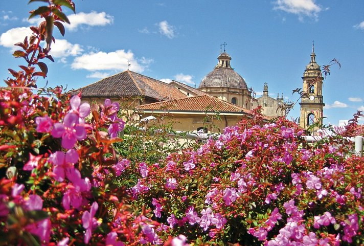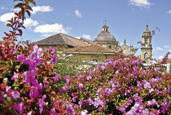 (Montag) Morgens steht eine halbtägige, abwechslungsreiche Stadtbesichtigung durch Kolumbiens Hauptstadt auf dem Programm. Sie lernen unter anderem das historische Altstadtviertel „La Candelaria” kennen, das von bunten Kolonialhäusern, kleinen Parkanlagen und prachtvollen Innenhöfen geprägt ist. Der Plaza Bolivar mit der Statue des Freiheitskämpfers Simon Bolivar und weitere geschichtsträchtige Bauten befinden sich ebenfalls in der Altstadt. Sie sehen auch sowie die beeindruckenden Kirchen San Francisco und La Tercera. Anschließend fahren Sie mit der Seilbahn auf den Monserrate, von wo aus Sie einen atemberaubenden Panoramablick über die Stadt genießen. Nachmittags Fahrt in das ca. 50 km entfernte Zipaquirá, wo Sie die imposante unterirdische Salzkathedrale besichtigen. Das salzhaltige Gewölbe beherbergt 14 Stationen des Kreuzweges Jesus Christus, die durch ein Tunnelsystem miteinander verbunden sind. Anschließend Weiterfahrt nach Villa de Leyva, einer prächtigen Kolonialstadt par excellence. Das koloniale Ambiente Villa de Leyvas hat schon viele Künstler inspiriert, so auch die Filmemacher einer spanischen Telenovela über das Leben und Treiben des legendären „El Zorro“. 2 Nächte im Hotel Posada de San Antonio (Mittelklasse, Landeskategorie: 3 Sterne) in Villa de Leyva. (Frühstück)