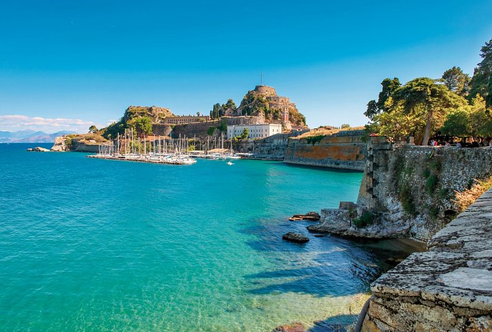 (Montag) Ein kurzer Transfer bringt Sie nach Paleokastritsa. Hier besuchen Sie das Kloster mit seinem herrlichen Blick auf das Meer. Von hier starten Sie Ihre Wanderung über Lakones nach Vistonas und Makarades. Der Weg führt durch Olivenhaine und vorbei an kleinen Dörfern, während sich immer wieder atemberaubende Ausblicke auf die Steilküste öffnen. Auf einem alten Maultierpfad steigen Sie hinab zur Bucht von Agios Georgios – eine der schönsten der ganzen Insel. Höhenmeter: + 380 m/- 390 m/ca. 11 km/ca. 4,5 Std. (Frühstück, Mittagessen, Abendessen)