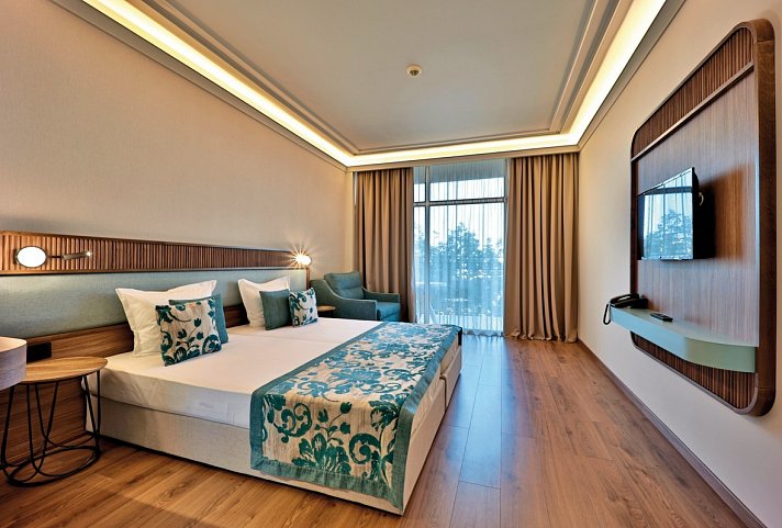 21-25 qm, Doppel, Landblick, Poolblick, renoviert (2024), Nichtraucher, Bettwäsche, Handtücher und Matratzen aus 100% Bio-Baumwolle, Schlafsessel, 1 Bad, Dusche, WC, Haartrockner, Laminatboden, Klimaanlage, Korridor/Flur, Safe (kostenpflichtig), 1 TV (Sat-TV, deutschsprachiges Programm, landestypisches Programm), WLAN, Kühlschrank, Balkon (möbliert), Bettwäschewechsel, Handtuchwechsel