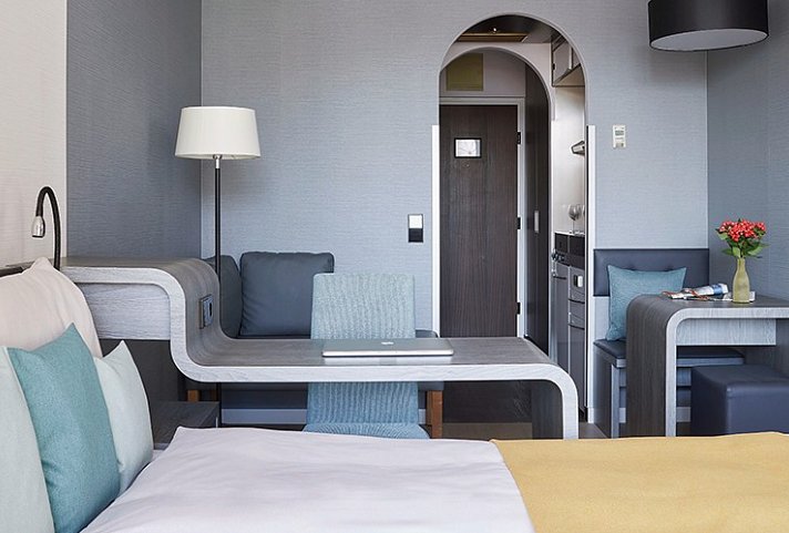 31-35 qm, Appartement, Superior, renoviert, 1 separates Schlafzimmer, optisch getrennter Wohn-/Schlafraum, Schreibtisch, Sofabett, Dusche oder Badewanne, WC, Haartrockner, Klimaanlage, Mini-Kühlschrank, Safe, TV, WLAN, Küche, Essecke, Gas-/E-Herd, Wasserkocher, Mikrowelle