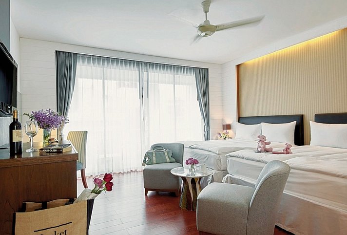 36-40 qm, Doppel, Nichtraucher, Bettwäsche, Handtücher und Matratzen aus 100% Bio-Baumwolle, Dusche, WC, Bademantel, Klimaanlage, individuell regulierbar, Ventilator, Minibar, Auffüllung täglich, Safe, TV (landestypisches Programm), Bluetooth-Lautsprecher, Balkon
