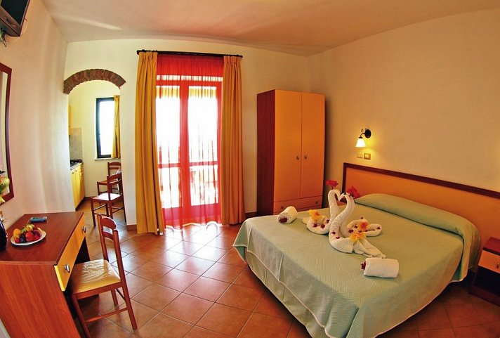 Eine Residenz im Grünen mit wunderschönem Meerblick. Genießen Sie den Ausblick von der Terrasse Ihres Apartments. Die Strände des Capo Vaticano liegen ganz in der Nähe.