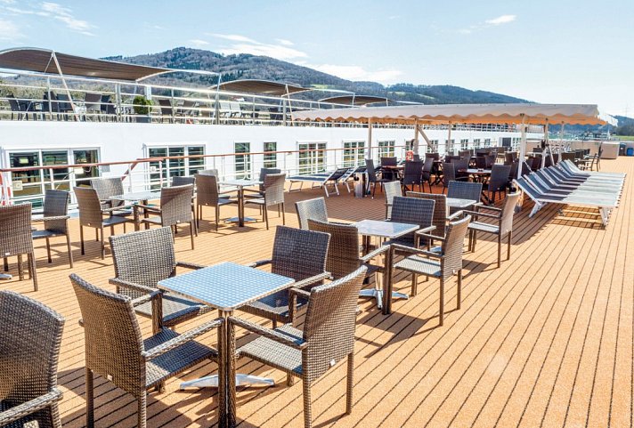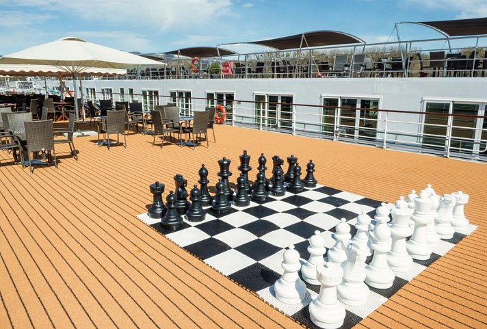 MS Prinzessin Katharina (gehobene Mittelklasse): Flussschiff mit klassischer Eleganz mit Panoramarestaurant, Lounge, Bar, Foyer, Bücherecke, kleiner Shop, Massagesalon, Sonnendeck mit Liegestühlen. 71 Kabinen mit Dusche/WC, Fön, Klimaanlage, TV, Telefon, Kühlschrank, ca. 11 qm.