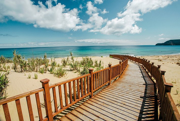 Auch Badefreunde kommen im Madeira-Urlaub mit unseren Angeboten auf ihre Kosten. Zwar finden sich direkt auf der Insel nur wenige Sandstrände, dafür aber viele kleine Badebuchten und Naturpools. Zu den beliebtesten Stränden gehören der Prainha Beach, die Praja da Laje und der Calheta Beach. Sehr zu empfehlen ist ein Tagesausflug auf die benachbarte Insel Porto Santo, die mit einem neun Kilometer langen, goldgelben und feinen Sandstrand aufwartet, der flach in das türkisblaue Meer verläuft. Porto Santo ist von Madeiras Hauptstadt Funchal aus bequem per Fähre zu erreichen.