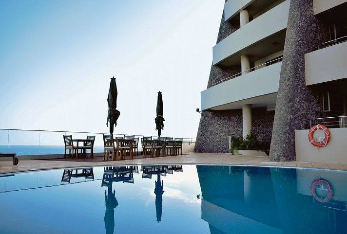 Dieses Hotel ruht majestätisch auf einer Klippe – unten das tiefe Blau des Atlantiks, oben das helle Blau des Himmels. Ein einzigartiger Ort mit einem einzigartigen Ausblick. In diesem Adults-only-Hotel neue Kraft für den Alltag tanken und die Ruhe genießen.