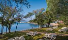 Kiesstrand: Sonnenschirme (kostenpflichtig), Liegen (kostenpflichtig), sanitäre Anlage (Dusche)