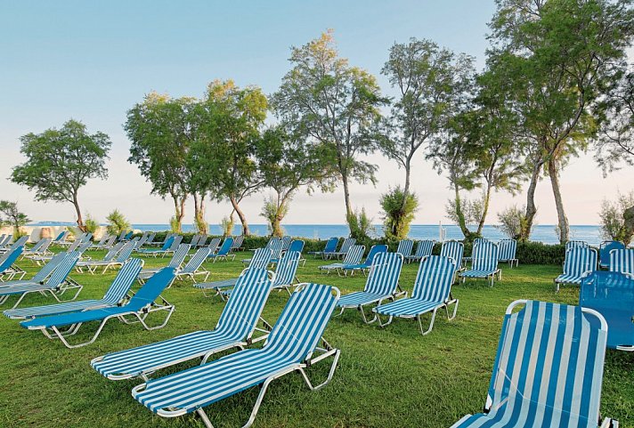 Ein blühender Garten und herrlich goldener Sandstrand erwartet Sie hier an der Malia Bay. Ob entspannen auf den stylishen Liegen und Bali-Betten oder Sandburgen bauen und planschen: Nicht nur Familien lieben das Hotel!