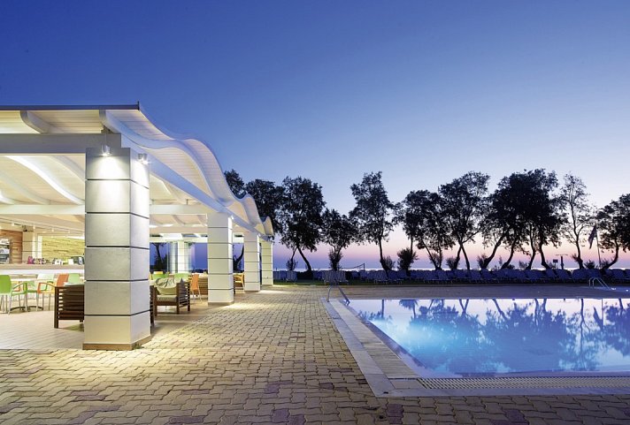 All Inclusive: Frühstück (Buffet), Langschläferfrühstück bis 10:30 Uhr, kontinentales Frühstück, American Breakfast, Mittagessen (Buffet), Abendessen (Buffet), Getränke kostenfrei (Softdrinks, Kaffee/Tee, Bier, Hauswein, Cocktails, Longdrinks, lokale Spirituosen, 10-23 Uhr), Snacks, Kaffee/Tee und Gebäck (16-17 Uhr)