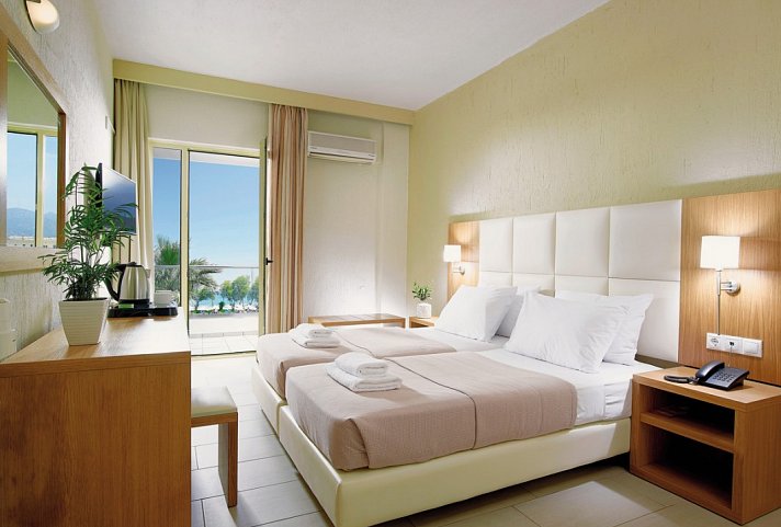 21-25 qm, Doppel, Superior, Meerblick, renoviert (2021), 1 Bad, Dusche, WC, Haartrockner, Kosmetikspiegel, Fliesen, Klimaanlage, ca. 1.4.-31.10., Safe, 1 TV (Sat-TV, deutschsprachiges Programm, landestypisches Programm), Wasserkocher, Kaffee/Tee, Kühlschrank, Terrasse (möbliert), direkter Poolzugang, Gemeinschaftspool