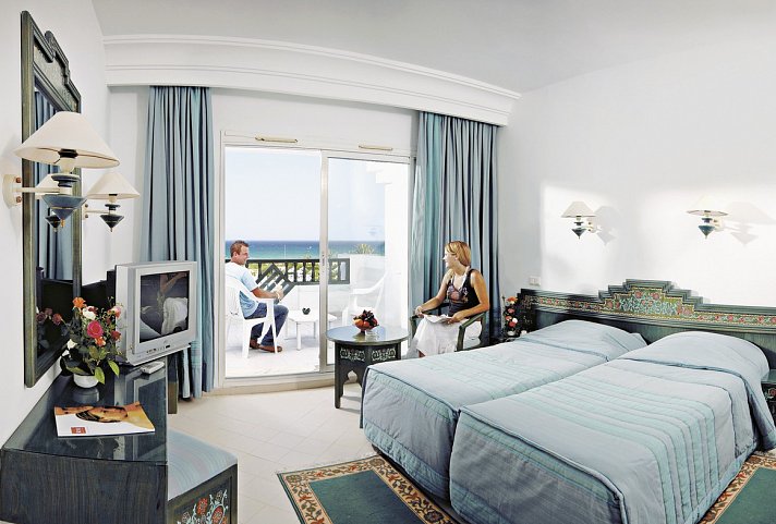 26-30 qm, Doppel, mit Zustellbett, Hauptgebäude, Meerblick, kombinierter Wohn-/Schlafraum, Einzelbett, Twinbett, Doppelbett, 1 Bad, Dusche oder Badewanne, separates WC, Haartrockner, Fliesen, Klimaanlage, individuell regulierbar, ca. 1.6.-30.9., Minibar kostenpflichtig, Safe, 1 TV (Sat-TV, deutschsprachiges Programm, landestypisches Programm, Flachbildschirm), Balkon oder Terrasse, Bettwäschewechsel (3 x wöchentlich), Handtuchwechsel (täglich)